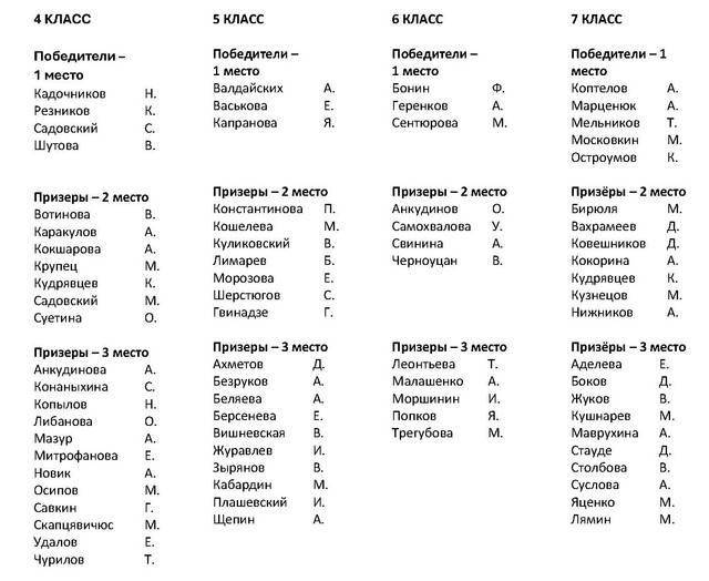 Победителей и призеров встречаем у входа Медиацентр Губернаторского лицея с 12.30 (4–5 классы) и 13.30 (6–7 классы) соответственно. С собой иметь сменную обувь и хорошее настроение!
