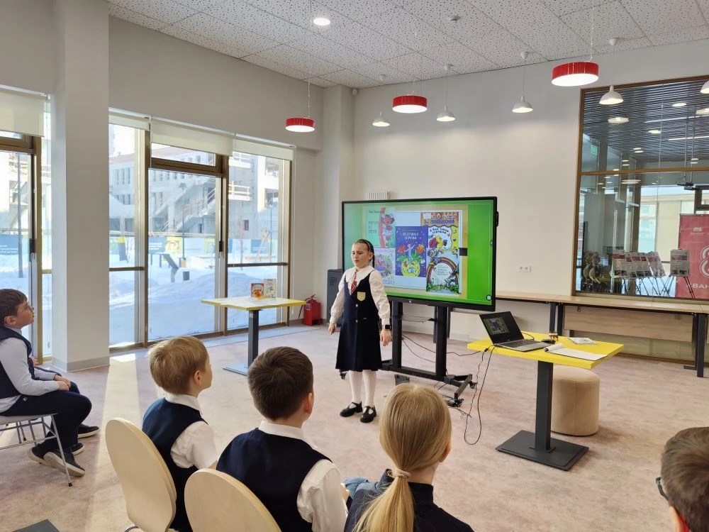 Учащиеся начальных классов совершили увлекательное путешествие по книге «Мы играем в школу», выполняя занимательные упражнения по русскому языку, математике, литературе и творческие задания по рисованию, но, а в завершении читали наизусть солнечные стихи Эммы Эфраимовны.