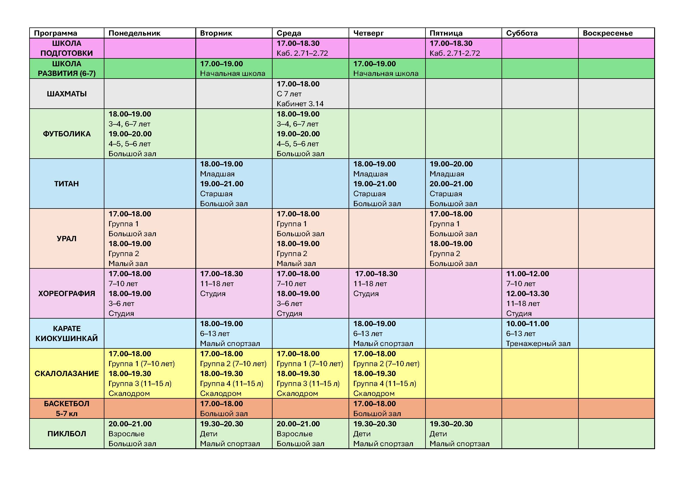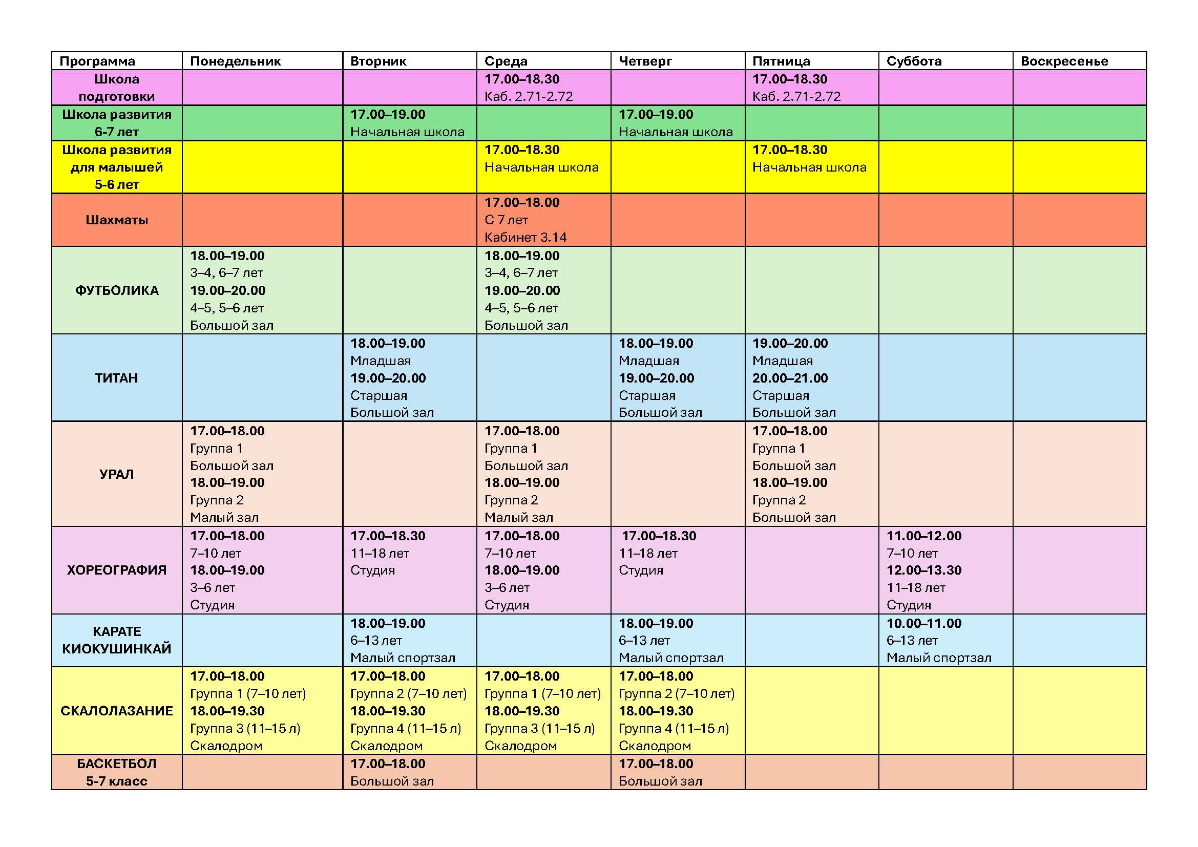 Группа 3 (11–18 лет) Вторник, четверг 17.00–18.30, суббота 12.00–13.30